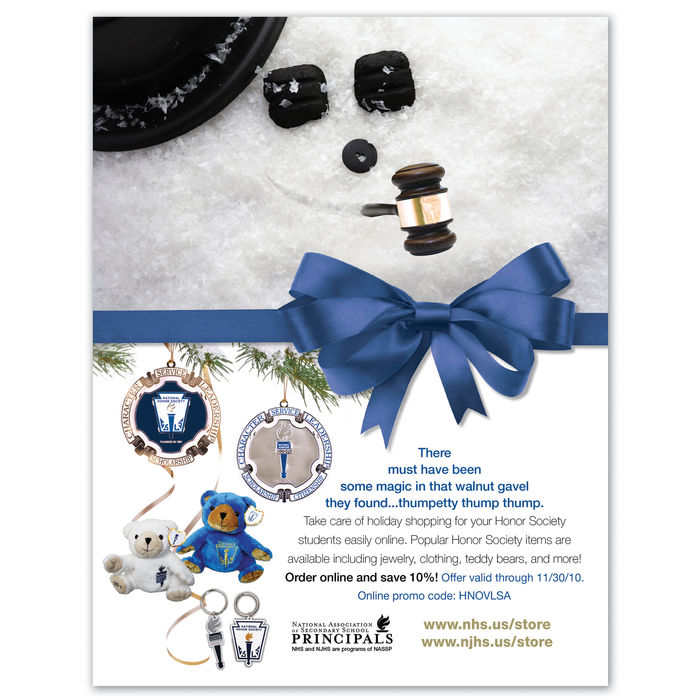 GD USA Awards: Holiday E-card, Ad for College Board, Ad/Brochure “Bring it National” NASC, NASSP Conference Series 6 years in a row, Direct Mail Penguin Member Acquisition, NHS Values Poster (requested by Steven Spielberg/Dreamworks "I Am Number 4" Movie), Poster: "Just Another Day In School...No Sweat"™ Word Poster, NASSP Holiday Snowman Sales Ad, Breakthrough Schools Logo & Collateral, Principal’s Book Club Logo, Bookmark & Flyer, NASSP Corporate Identity Package